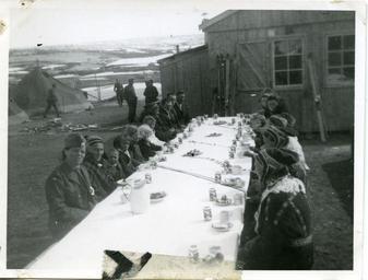 | Keywords: andre verdenskrig andreverdenskrig frigjøring feiring vårslipp 2015 vårslipp2015 kautokeino / guovdageainnu kautokeinoguovdageainnu finnmark norge Original bildetekst: Vi stekte vafler, dekket bord ute, kokkene som bor i teltene her, kokte kakao, ellers hadde vi en pakke kjeks, og en plate melkesjokolade til hver. Gjestene kom og man gikk til bords, barn i alle aldre. Fotografiet kommer fra et album gitt til Riksarkivet av sykepleier Marie Lysnes. Våren 1945 deltok hun i opprettelsen av et feltsykehus i Finnmark. Lysnes dokumenterte oppholdet i Finnmark gjennom tekst og bilder. Albumet er en del av privatarkivet etter Marie Lysnes. Arkivreferanse: PA-0873: Lysnes, Marie, Riksarkivet. Original bildetekst: Vi stekte vafler, dekket bord ute, kokkene som bor i teltene her, kokte kakao, ellers hadde vi en pakke kjeks, og en plate melkesjokolade til hver. Gjestene kom og man gikk til bords, barn i alle aldre. Fotografiet kommer fra et album gitt til Riksarkivet av sykepleier Marie Lysnes. Våren 1945 deltok hun i opprettelsen av et feltsykehus i Finnmark. Lysnes dokumenterte oppholdet i Finnmark gjennom tekst og bilder. Albumet er en del av privatarkivet etter Marie Lysnes. Arkivreferanse: PA-0873: Lysnes, Marie, Riksarkivet. |