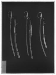 | Keywords: Kavalleriofficerssabel, Sverige 1810-1818 med fäste av s.k - Livrustkammaren - 60749-negative.tif LSH artwork sv Fäste av förgylld reliefornerad mässing kappa framtill i form av ett<br/>lejonhuvud med manen inramad av en slät list och baktill övergående i en<br/>nedåtböjd hylsa utgörande kavelns överdel denna ornerad med stiliserade<br/>blad på baksidans förlängda nederdelen stjärnliknande rosett Handbygel<br/>i sin helhet bågformig överdelen intappad i lejongapet mellandelen på<br/>båda sidor med en ranka av klockformiga blad på mitten avbruten av en<br/>långsträckt rosett Bakre parerstång nedåtböjd ornerad med enkla snedställda<br/>blad och avslutad med en liten rund rosettornerad skiva Styrskenor stora <br/>formade som romber med insvängda sidor och tvärt avskurna hörn samt ornerade med en bröstbild av Minerva i profil åt vänster <br/>Kavel av ebenholts med mjukt rektangulärt tvärsnitt ut-och insidan med tätt inskuret rombiskt rutmönster <br/>Klinga böjd eneggad och med plan rygg spetspartiet med ryggsidan konkavt<br/>insvängd mot eggsidan Ut-och insidan med bred hålkäl nående fram till<br/>ett avstånd av ca 125mm från spetsen På starka delens båda sidor etsad<br/>och förgylld ornering Nedtill ett rektangulärt fält inramat av förgylld<br/>bård härovanför liten trofégrupp med oval sköld vari otydligt tre kronor <br/>längst upp ett trekronorsvapen i oval sköld omgivet av lagerkrans Mellan<br/>trofégruppen och den ovala trekronorsskölden på utsidan under kunglig krona<br/>monogram av dubbelt C omslutande ordningssiffran XIII Karl X1II under<br/>monogrammet ett svärd korsat med ett ankare på insidan under svensk hertig-krona ett monogram av CJ kronprins Karl Johan under monogrammet två korsade svärd original caption - 1810 1818 ebony b6 - blankvapen - kavel och kavelklädsel material ebenholts - steel b2 - blankvapen - klinga material stål - brass b1 - blankvapen - fäste material mässing g 660 size mm 954 size mm 817 klinga size mm 138 size mm 26 klinga LRK place of origin original filename LN_B05377_008257 47539 inventory number LRK 10974 60749 CC0 Kavalleriofficerssabel Sverige 1810-1818 med fäste av s k - Livrustkammaren - 60749 tif |