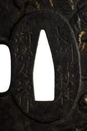 | Keywords: Kawaji Tomotsugu - Tsuba with the Seven Gods of Fortune - Walters 51338 - Mark A.jpg The Seven Gods of Good Fortune Shichifukujin are a Japanese folk tradition that emerged from Buddhist Taoist and Shinto beliefs On the front Daikoku the god of wealth appears that the upper right with bales of rice Next to him is Jurôjin the god of wisdom or longevity At the bottom is Bishamon who is the god of warriors On the left is Ebisu the god of fishing or daily food On the reverse the remaining three gods are shown on the left side At the bottom is Fukurokuju the god of longevity In the middle is Benzaiten the only female and the goddess of music At the top is Hotei the god of happiness and good health Hotei's bag of treasures appears on the right These gods also appear individually and in other groupings Their spheres of influence are not fixed and they sometimes appear with other traits between 1669 1712 early Edo iron gilt shakudo shibuichi copper cm 8 8 8 5 0 45 accession number 51 338 22816 Henry Walters Baltimore date and mode of acquisition unknown Walters Art Museum Henry Walters Acquired by Henry Walters Place and Signature Choshu Hagi ju/Kawaji Tomotsugu saku; Translation Residing in Hagi Choshu province/made by Kawaji Tomotsugu place of origin Hagi Japan Walters Art Museum license Tsuba in the Walters Art Museum Kawaji Tomotsugu Media contributed by the Walters Art Museum needs category review |