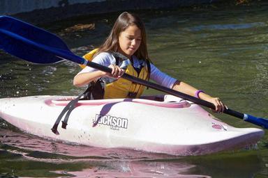 Keywords: kayak river child canoe water kayaking paddle sport fun boat outdoors leisure recreation kayaker young healthy enjoying sitting recreational