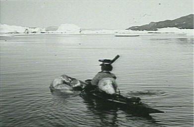 Keywords: KayakBearHunter.jpg Greenlandic polar bear hunter in kayak 1904 Photograph by Carl Peter Rüttel 1859 “ 1915 PD-old 1904 in Greenland Ursus maritimus in Greenland Ursus maritimus hunting Hunting in Greenland Inuit kayaking