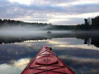 Keywords: kayaks lake nature landscape river water the fog reflection the silence peace of mind borg sunset