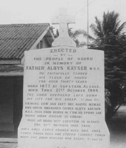 | Keywords: Kayser Nauru.jpg Monument in memory of father Alois Kayser priest on the Island Nauru he died during the japanese occupation in Truk cropped version NAURU ANDERSON 3 ROLLS OF NEGATIVES ROLL 2 FILES UNDER MARSHALLS NEGATIVES ONLY - Reel 3277 Photo 7 - Kayser monument N-13/13A http //libweb hawaii edu/digicoll/ttp/ttp_jpg/327707 jpg Trust Territory of the Pacific Islands Hawaii university library 1977 Trust Territory of the Pacific Islands Hawaii university library PD-USGov History of Nauru Alois Kayser |
