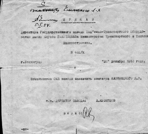 | Keywords: Kaz002.jpg ru П иказ о назначение Л Е Казиницкого начальником ОКБ завода им Ки ова 1953 год 2012-06-30 Из а хивов музея Пет ишуле - евский п дом 22/24 СПб РФ Документы Custom license marker 2012 07 01 PD-ineligible Petrischule Uploaded with UploadWizard PD-RU-exempt Military of the Soviet Union |
