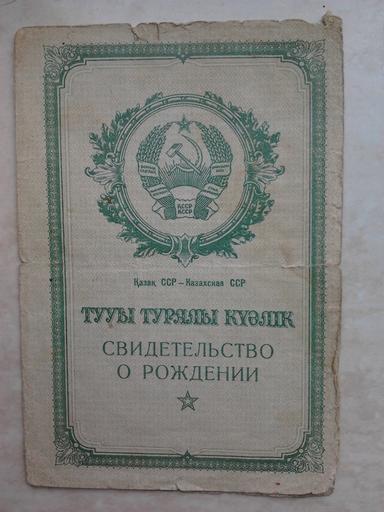| Keywords: Kazakh Soviet Birth Certificate 1955.jpg ru Свидетельство о ождении Казахская ССР СССР 1958 год kk Тууы ту алы куәлік Қазақ КСР КСРО 1958 жыл en Birth certificate Kazakh SSR USSR 1958 de Geburtsurkunde Kasachische SSR Sowjetunion 1958 fr Acte de naissance République socialiste soviétique kazakhe URSS 1958 zh 出生證明書 哈萨克苏维埃社会主义共和国 苏联 1958年 es Certificado de Nacimiento RSS de Kazajistán URSS 1958 pt Certidão de nascimento República Socialista Soviética Cazaque URSS 1958 pl Świadectwo urodzenia Kazachska Socjalistyczna Republika Radziecka ZSRR 1958 own Spacekid 2014-05-21 Birth certificates of the Soviet Union Cc-zero |