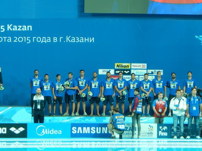 | Keywords: Kazan 2015 - Water polo - Men - Gold medal match - 270.JPG ru Вате польный матч между командами Се бии и Хо ватии за золотые медали чемпионата ми а по водным видам спо та в Казани и це емония наг аждения победителей Все фотог афии сняты в секто е для фото епо тё ов куда можно было попасть только имея билет на несуществующие места я как аз был обладателем такого билета Все получившиеся фотог афии пе едаю на Викисклад по свободной лицензии en The gold medal match between Team Serbia and Team Croatia and the victory ceremony All photos have been taken from the photographers sector I was simply usual visitor but my ticket was to non-existent seats therefore I was moved to that sector All good photos I upload to WikiCommons for free use 2015-08-08 own Chan-Fan other versions 55 817953 49 151934 cc-zero Water Polo at the 2015 World Aquatics Championships Men's Gold medal match Uploaded with UploadWizard |