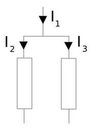 Keywords: KCL.svg Schematic to explain Kirchhoffs Current Law Own 2009-11-24 Steen919 Teaching illustrations of electronics Kirchhoff's laws Kirchhoff's circuit laws