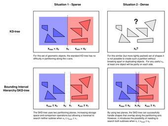 Keywords: Kd tree vs skd tree.svg A diagram demonstrating and motivating one stage of SKD-Tree a k a Bounding Interval Hierarchy partitioning 2014-01-14 own AlgoPunk <span class signature-talk >talk</span> Cc-zero Uncategorized 2014 January 14