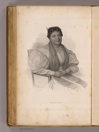 Keywords: Kekauluohi (4442.055).jpg en Kekāuluohi Sketched by A T Agate; engraved by Welch and Walter Charles Wilkes described the encounter in his Narrative of the United States Exploring Expedition p 4 <blockquote>The person who attracted our attention most was Kekauluohi This lady is upwards of six feet in height; her frame is exceedingly large and well covered with fat She was dressed in yellow silk with enormously large gigot sleeves and wore on her head a tiara of beautiful yellow feathers interspersed with a few of a scarlet colour Above the feathers appeared a large tortoise-shell comb that confined her straight black hair Her shoulders were covered with a richly embroidered shawl of scarlet crape She sat in a large arm-chair over which was thrown a robe made of the same kind of yellow feathers as decked her tiara Her feet were encased in white cotton stockings and men s shoes She was altogether one of the most remarkable-looking personages I have ever seen </blockquote> http //www davidrumsey com/luna/servlet/detail/RUMSEY~8~1~32625~1151995 David Rumsey Map Collection Sketched by Creator Alfred Thomas Agate Engraved by Welch and Walter drawn 1838 1842 published 1845 PD-old-100 Kekāuluohi Hawaii in the 1840s United States Exploring Expedition Alfred Thomas Agate |