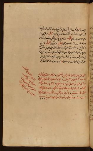| Keywords: Kemalpasazade - Colophon - Walters W584151A - Full Page.jpg This folio is from Walters manuscript W 584 Written in red ink the colophon gives details about the model exemplar the author's name the name of the scribe and the date of copying islamic 1558 966 Ottoman ink and pigments on laid European paper cm 21 13 accession number W 584 151A 79981 'Ali date and mode of acquisition unknown Ex libiris min kutub on fol 1a Vizier al-Shahid 'Ali Pasha 1130 AH/AD 1717 mode of acquisition unknown waqf seal on fol 1a with the original shelf mark 191 beneath Same impression on fols 1b 2a 156b Henry Walters Baltimore date and mode of acquisition unknown Walters Art Museum Henry Walters Acquired by Henry Walters Transliteration place of origin Turkey Walters Art Museum license 2D Islamic manuscripts in the Walters Art Museum Media contributed by the Walters Art Museum needs category review Media contributed by the Walters Art Museum needs artist review |