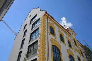 Keywords: kempten brewhouse architecture tower house glass mirroring cloud sky town home roofs downtown urban planning live and work
