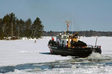 Keywords: kennebec river maine coast guard ice cutter winter snow ice forest trees woods water river inlet frozen nature outside
