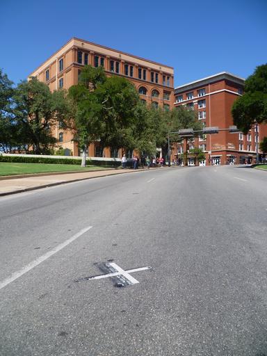Keywords: kennedy murder dallas texas historical murder scene street blue sky tree buildings himmel summer united states