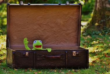 Keywords: kermit farewell cute children funny sweet luggage antique leather old suitcase junk generations travel go away wave soft toy animal frog stuffed animal