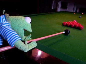 Keywords: kermit frog billiards balls black play table company pool table juze about doll green
