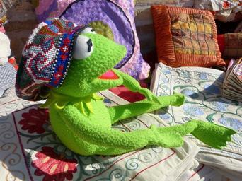 Keywords: kermit frog cap hat put on bear headwear clothing