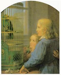 | Keywords: Kersting - Zwei Kinder vor einem Papageienbauer.jpg Artwork Creator Georg Friedrich Kersting ca 1835 oil canvas cm 63 5 76 Private collection accession number object history credit line Hannelore Gärtner Georg Friedrich Kersting Seemann Leipzig 1988 PD-old-100 Paintings by Georg Friedrich Kersting Portrait paintings with parrots Children with animals in art 1830s paintings | ||||