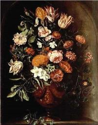 | Keywords: Kessel, Peter - A still life with tulips in a stone niche.jpg Artwork creator Peter van Kessel A still life with tulips roses a red turban cup lily auricula jasmin an iris carnations and other flowers in a vase all in a stone niche century 17 oil on canvas 82 6 x 63 6 cm Gallery Location Signed http //www artnet de/Artists/LotDetailPage aspx lot_id 61A39B1BDF649647B5C2063F13FF6DB7 Other versions PD-old-100 Peter van Kessel Still-life with tulips roses a red turban cup lily Baroque still life paintings of flowers Oil still life paintings 17th-century still life paintings of flowers 17th-century paintings location missing Niches in art 17th-century oil on canvas paintings Vases in still-life paintings 17th-century paintings not categorised by year Uploads by Mattes from external sources Still-life paintings with irises |