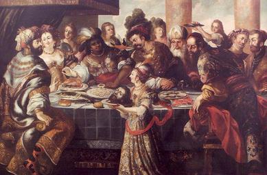 | Keywords: Kessler Gastmahl des Herodes.jpg Artwork creator Stephan Kessler ca 1660 Oil on canvas cm private collection object history credit line accession number Leo Andergassen und Helmut Stampfer Hrsg Stephan Kessler Ein Tiroler Maler der Rubenszeit Ausstellungskatalog Diƶzesanmuseum Hofburg Brixen 2005 PD-old-100 DEFAULTSORT Kessler Herod Antipas Stephan Kessler 17th-century paintings in unidentified private collections Feast of Herod 1600s paintings in private collections 1660c 17th-century oil on panel paintings 17th-century paintings of John the Baptist 17th-century paintings of New Testament 17th-century paintings of Salome Africans in 17th-century art Paintings of banquets Cut-off heads in art Feathered headdresses in art male Turbans in art |