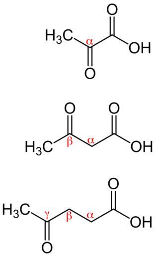 Keywords: Ketocarboxylic Acids General Formulae V.1.svg en Ketocarboxylic_Acids_General_Formulae de Ketocarbonsäuren_Allgemeine_Formel own Jü 09/08/2010 Ketocarboxylic_Acids alpha beta gamma Keto acids