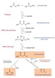| Keywords: Ketogenesis.svg en Ketogenesis pathway The enzymes are coloured red the substrates/products are coloured blue The three ketone bodies acetoacetate acetone and beta-hydroxy-butyrate are marked within an orange box 2012-09-23 02 37 01 own Sources File Ketogenesis png File Acetyl-CoA svg File Acetoacetyl-CoA svg File Aceton svg File Acetoacetate_to_beta-hydroxybutyrate svg File HMG_coenzyme_A svg Sav vas cc-zero Uploaded with UploadWizard Medical diagrams Metabolic pathways Fatty acids | ||||