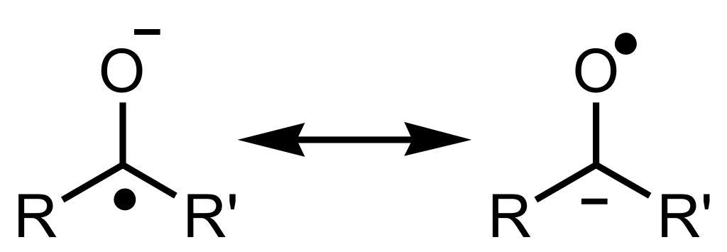 Keywords: Ketyl structure.svg C - en General structure of ketyl anion radical ja ケチルの 般構 式 Own work made with ChemDraw Su-no-G 2008-09-06 Anions