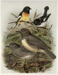| Keywords: Shows tomtits in foreground and robins on a branch above, in a bush setting Quantity: 1 colour art print(s) in book.. Physical Description: Lithograph, coloured 273 x 204 mm. Keulemans, John Gerrard, 1842-1912. Keulemans, John Gerrard, 1842-1912 :South Island tomtit, myiomoira macrocephala. North Island tomtit, myiomoira toitoi. North Island robin, miro australia. South Island robin, miro albifrons. / J. G. Keulemans delt. & lith. Judd & Co. [Plate V. 1888].. Buller, Walter Lawry (Sir) 1838-1906 :A history of the birds of New Zealand. 2d ed. London, John van Voorst, 1888.. Ref: PUBL-0012-05. Alexander Turnbull Library, Wellington, New Zealand. natlib.govt.nz/records/22884548 Shows tomtits in foreground and robins on a branch above, in a bush setting Quantity: 1 colour art print(s) in book.. Physical Description: Lithograph, coloured 273 x 204 mm. Keulemans, John Gerrard, 1842-1912. Keulemans, John Gerrard, 1842-1912 :South Island tomtit, myiomoira macrocephala. North Island tomtit, myiomoira toitoi. North Island robin, miro australia. South Island robin, miro albifrons. / J. G. Keulemans delt. & lith. Judd & Co. [Plate V. 1888].. Buller, Walter Lawry (Sir) 1838-1906 :A history of the birds of New Zealand. 2d ed. London, John van Voorst, 1888.. Ref: PUBL-0012-05. Alexander Turnbull Library, Wellington, New Zealand. natlib.govt.nz/records/22884548 |