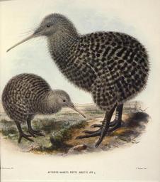 | Keywords: outdoor Shows an adult male little spotted kiwi viewed from the side, with a juvenile female, both in an open landscape Quantity: 1 colour art print(s) in book.. Physical Description: Lithograph, hand-coloured, 307 x 240 mm Keulemans, John Gerrard, 1842-1912. Keulemans, John Gerrard, 1842-1912 :Apteryx haastii. Potts. Adult [male]; juv[enile, female]. / J. G. Keulemans delt. T. Walter, lith. [1876]. Rowley, George Dawson :Ornithological miscellany. London, Trubner & Co, 1876. Ref: PUBL-0035-1-008. Alexander Turnbull Library, Wellington, New Zealand. natlib.govt.nz/records/23206054 Shows an adult male little spotted kiwi viewed from the side, with a juvenile female, both in an open landscape Quantity: 1 colour art print(s) in book.. Physical Description: Lithograph, hand-coloured, 307 x 240 mm Keulemans, John Gerrard, 1842-1912. Keulemans, John Gerrard, 1842-1912 :Apteryx haastii. Potts. Adult [male]; juv[enile, female]. / J. G. Keulemans delt. T. Walter, lith. [1876]. Rowley, George Dawson :Ornithological miscellany. London, Trubner & Co, 1876. Ref: PUBL-0035-1-008. Alexander Turnbull Library, Wellington, New Zealand. natlib.govt.nz/records/23206054 |