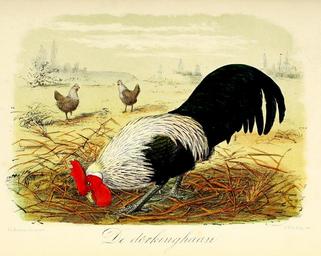 | Keywords: Keulemans Onze vogels 2 63.jpg « Gallus domesticus » Gallus gallus domesticus Chicken - breed Dorking chicken « Gallus domesticus » Gallus gallus domesticus Poule domestique - race Dorkin http //archive org/stream/onzevogelsinhuis02keul page/n379/mode/2up Onze vogels in huis en tuin creator John Gerrard Keulemans 1873 PD-old-100-1923 Dorking chicken in art Onze vogels in huis en tuin - vol 2 | ||||