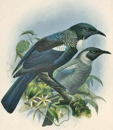 | Keywords: Keulemans tui.jpg Prosthemadera novaezealandiae en Tui Adult and young A pair of tui seen in profile perched on branches with native clematis in flower The nearer adult bird shows its full range of plumage colour and a wattle The younger bird has no wattle and is mostly grey in plumage with blue on its wings only From Buller W L A History of the Birds of New Zealand 1st ed London 1873 opp p 87 Alexander Turnbull Library URL http //digital natlib govt nz/get/27951 profile access Reference No PUBL-0134-087 Present image has been cropped and levels etc adjusted 1873 Keulemans John Gerrard 1842-1912 Out of Copyright worldwide thumb left PD-old checked WikiProject Birds Prosthemadera novaeseelandiae PD Old files uploaded by User Kahuroa A History of the Birds of New Zealand by Buller |