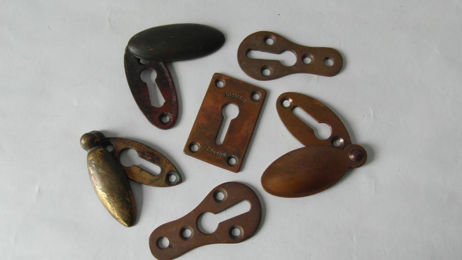 Keywords: key covers keyholes escutcheons brass vintage keyhole covers antique old