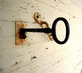 Keywords: key lock open unlocked metal door rust door handle