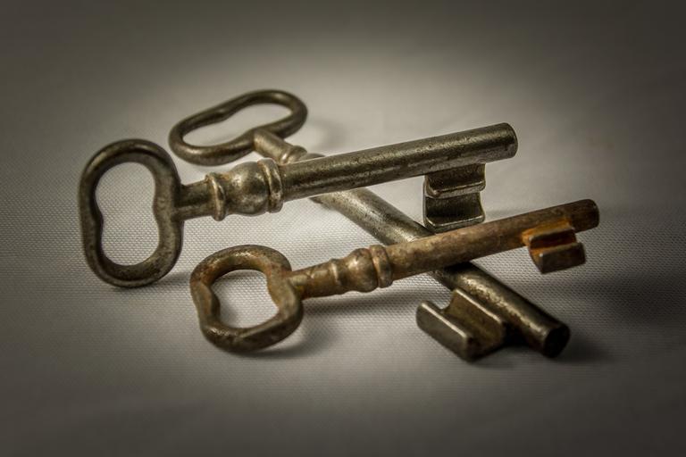 Keywords: key metal old close to door key iron locks to close