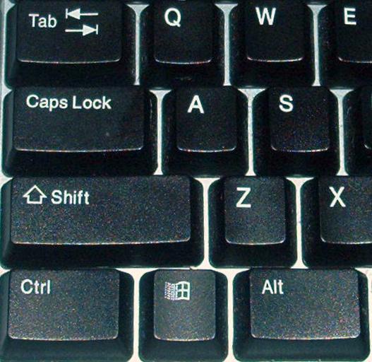 Keywords: Keyboard-left keys.jpg Left keys of a windows keyboard Control key Alt key Windows key Shift key Tab key Caps lock key Taken with HP PhotoSmart 318
