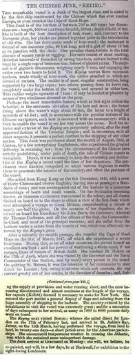 Keywords: KeyingFullArticle.jpg A Junk Keying article published in The Illustrated London News The Illustrated London News 1848-04-01 Author PD-old PD-ineligible History of Hong Kong Ships of China Qing Dynasty ILN 1848