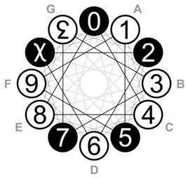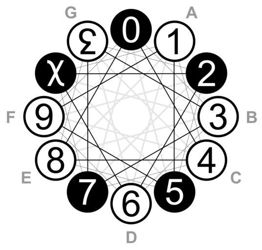 | Keywords: Keys in dozenal clock.svg The twelve keys of the octave arranged in a duodecimal clock These are the numbers of each key e g 40 for c<sup>1</sup> mod 12 <br> See key numbers in Piano key frequencies <small> https //en wikipedia org/w/index php title Piano_key_frequencies oldid 612861909 oldid </small> Thin lines are minor thirds major sixths thicker lines are major thirds minor sixths <br> The lines of the gray dodecagram are fifths fourths <br> Every triad is a triangle of two thirds and a fifth thumb left 733px The 12 keys in the octave and their key numbers own Mate2code Music diagrams with duodecimal signs Clocks without hands Clocks with Arabic numerals Twelve pointed stars Cc-zero |