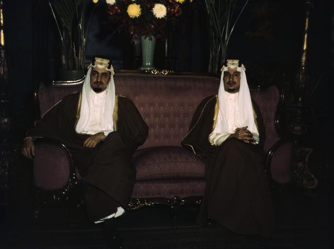 | Keywords: Khalid and Faisal of Saudi Arabia - 1941.jpg Amir Khalid right and Amir Faisal left sons of King Ibn Saud of Saudi Arabia Original caption Their Royal Highnesses recently concluded an extensive visit in the United States as guests of the government They have made a special study of irrigation projects in the United States The princes at their own farewell reception in the nation's capital Library of Congress Prints and Photographs Division Farm Security Administration - Office of War Information Collection http //hdl loc gov/loc pnp/fsac 1a35390 ~ 1941 John Rous PD http //www loc gov/rr/print/res/072_fsac html Kings of Saudi Arabia PD-USGov Faisal ibn Abdelaziz King Khalid bin Abdulaziz |