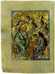 Keywords: Khitrovo Gospels 02.jpg Khitrovo Gospels Евангелист Иоанн Богослов и П охо http //www icon-art info/masterpiece php lng ru mst_id 1276 century 15 Andrei Rublev Khitrovo Gospels Miniatures of Saint John the Evangelist at Patmos PD-Art
