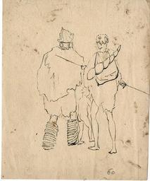 | Keywords: Khoi Family WDL11273.png Artwork ru Семья кой-коин fr Une famille Khoï en Khoi Family zh 科伊家庭 pt Família Khoi ar عائلة من الخُوْي ru Этот наб осок на кото ом изоб ажены мужчина и женщина кой-коин с ебенком позади них входит в коллекцию из 27 исунков на 15 листах обна уженных в 1986 г в ациональной библиотеке Южной Аф ики Ценность этих исунков заключается в том что они соде жат самые анние еалистичные изоб ажения п едставителей на одности кой-коин ко енных жителей Западно-Капской п овинции а яд женщины состоит из ост оконечной кожаной шапки двойного ка осса одеяла или накидки из шку и кожаных ейтуз в ушах у нее большие се ьги ужчина одет в ко откий ка осс в его волосах видны ук ашения а в уках он де жит кожаную сумку све нутый мешок и ассагай копье Ассагай использовавшийся туземцами в айоне ыса Доб ой адежды п едставлял собой длинное метательное копье с железным наконечником что делало его непохожим на ассагай зулуссoв ко откое колющее о ужие В аннеев опейских источниках можно найти большое количество инфо мации о кой-коин однако иллюст ации вст ечаются едко Входящие в коллекцию исунки были сделаны с нату ы и в отличие от большинства анних ев опейских изоб ажений п едставителей кой-коин никогда не инте п ети овались ев опейскими иллюст ато ами По всей ве оятности исунки выполнены одившимся в XVII веке голландцем кото ый по оду деятельности был связан с Голландской Ост-Индской компанией а возле ыса Доб ой адежды оказался по пути в Голландскую Ост-Индию или об атно в иде ланды Есть основания полагать что названные исунки были созданы не позднее 1713 г а быть может и го аздо аньше Большинство из них соде жат п имечания на голландском языке добавленные после 1730 г д угим человеком имя кото ого также остается неизвестным <br> ыс Доб ой адежды; Одежда и платье; Семьи; Ко енные на одности; Кой-коин аф иканский на од ; авы и обычаи fr Cette esquisse d un couple khoï et d un enfant vus de derrière fait partie d un ensemble de 27 dessins sur 15 feuilles qui a été découvert à la Bibliothèque nationale d Afrique du Sud en 1986 L importance des dessins réside dans l illustration des premières représentations réalistes des Khoïkhoï les premiers habitants du Cap-Occidental La femme porte un bonnet pointu en peau de grandes boucles d oreille une double kaross une couverture ou une cape faite de peaux et des jambières en peau L homme a des ornements dans ses cheveux un sac en peau ainsi qu un sac en forme de rouleau une kaross courte et une sagaie lance Au Cap la lance aurait été longue avec une pointe en fer destinée à être lancée contrairement à la sagaie zouloue qui était une lance courte servant à poignarder On trouve de nombreuses informations sur les Khoïkhoï dans les premiers récits européens mais il existe peu d illustrations Les dessins de la collection ont été réalisés <em>in situ</em> et contrairement à la plupart des premières représentations européennes des Khoïkhoï ils n'ont jamais été réinterprétés par les graveurs européens L artiste était fort probablement un Néerlandais né au XVIIe siècle qui occupait une certaine fonction à la Compagnie néerlandaise des Indes orientales Il se dirigeait vraisemblablement vers les Indes orientales néerlandaises ou rentrait aux Pays-Bas quand il a visité le Cap Des indications laissent à supposer que les dessins ont été réalisés au plus tard en 1713 et probablement même beaucoup plus tôt La plupart des dessins portent des annotations faites après 1730 par une autre personne elle aussi non identifiée <br>Cap de Bonne-Espérance; Vêtements et habits; Familles; Peuples autochtones; Khoïkhoï peuple africain ; Mœurs et coutumes en This sketch of a Khoi couple and child seen from behind is from a set of 27 drawings on 15 sheets that was discovered in the National Library of South Africa in 1986 The drawings are important for presenting the earliest realistic depictions of the Khoikhoi the original inhabitants of the Western Cape The woman wears a pointed skin cap large earrings double kaross a blanket or cape made of skins and skin leggings The man has ornaments in his hair a skin bag as well as the roll sack a short kaross and an assegai spear In the Cape this would have been a long spear with an iron head for throwing unlike the Zulu assegai which was a short stabbing spear Much information about the Khoikhoi is available from early European accounts but few illustrations exist The drawings in the collection were made <em>in situ</em> and unlike most early European depictions of the Khoikhoi 