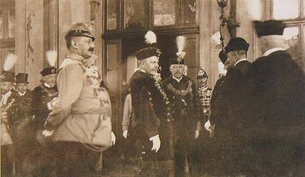 | Keywords: Khuen-Héderváry 1910-07.jpg en Members of the newly-installed Khuen-Héderváry Cabinet first row from left Defence Minister Samu Hazai Prime Minister Károly Khuen-Héderváry and Finance Minister László Lukács are waiting for Emperor-King Francis Joseph I who arrived to Hungary to open the inaugural session of the new National Assembly at Budapest-Nyugati Railway Terminal in July 1910 Izsák “Pölöskei “Romsics “Urbán Magyar miniszterelnökök 1848 “2002 Kossuth Kiadó Budapest 2003 p 69 image and p 226 register Creator Gyula Jelfy 1910-07 PD-old Photographs by Gyula Jelfy Károly Khuen-Héderváry Samu Hazai László Lukács politician Interior of Budapest-Nyugati pályaudvar 1910 in Budapest DÃszmagyar ImageNote 1 465 156 383 395 2449 1425 2 Samu Hazai ImageNoteEnd 1 ImageNote 2 1026 260 324 398 2449 1425 2 Károly Khuen-Héderváry ImageNoteEnd 2 ImageNote 3 1371 334 162 405 2449 1425 2 László Lukács ImageNoteEnd 3 |
