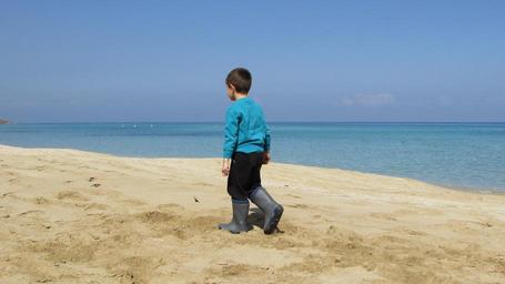 Keywords: kid boy child walking beach