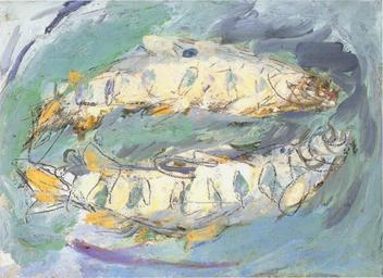 | Keywords: KidaKinjiro-1960-Fishes.png Artwork 魚 Fishes 田金次郎 Kida Kinjiro 1960年頃 ca 1960 Oil on canvas cm 24 4 33 4 人蔵 1999年現 Owned privately as of 1999 田金次郎画集 田金次郎美術館 1999年 PD-Japan 1962 Other versions Paintings in and after 1954 by Kida Kinjiro PD-Japan |