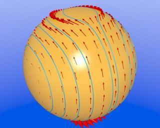 | Keywords: Killing-vector-s2.png en A Killing vector field K sin phi e_theta + cot theta cos phi e_phi and its integral curves of the S2 minus the poles with induced metric Created with POVRAY own Mrfister 07/17/08 General relativity Differential geometry Created with Persistence of Vision |