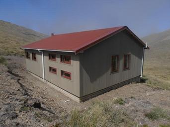 Keywords: Kime Hut 3.jpg Kime Hut W Tararua Range Tararua rear side 2015-12-31 own Sarang Kime Hut