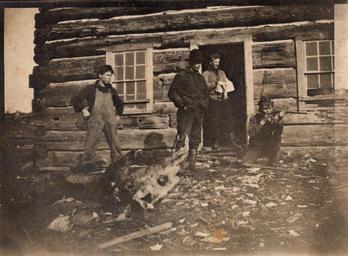 | Keywords: kimmerly ranch kimmerlyranch kimmerly sheldrake lake sheldrakelake skootamatta lake skootamattalake cloyne claude wilfred lessard claudewilfredlessard francis lessard francislessard henry lloyd henrylloyd angus andrews angusandrews log cabin logcabin cabin gun hunter monochrome This is a very old photo of the Kimmerly Ranch House which was thought to be located around the Sheldrake Lake, on Gilmour's Landing where Sheldrake Lake meets Skootamatta Lake (unconfirmed). The back of the Post Card reads: 'Kimmerly Ranch House. Claude Wilfred Lessard, Francis Lessard, Henry Lloyd, Angus Andrews'. The following information about the ranch is cited from: Lake Tales - A. Douglas Alkenbrack - Memories of a Daughter by Eleanor Grennell on www.skootamatta.com 'In early September of 1969 my father, my husband Herbert, my grandfather Claude decided to take a drive north from Napanee. When they arrived at Cloyne, Claude suggested a left turn to drive in the old logging road that goes through to Skootamatta and Sheldrake lakes. At this point in time the road twisted and turned around the rocks and hills and was very narrow. Claude’s idea was that he would show his Uncle’s property his Uncle had used, through a quick claim deed. There had been an old homestead where he raised beef cattle back in the late 1800’s. Claude had spent time there when he was a boy. The homestead was situated near the landing between Sheldrake and Skootamatta lakes. They identified the spot where the old house had stood after finding the remnants of the root cellar. It sat on a rise looking down at the stream that flows out of Sheldrake Lake into Skootamatta. The old ranch was run by Robert W. Kimmerly, Claude’s Uncle who subsequently opened a General Store in Flinton. - See more at: www.skootamatta.ca/blog/douglas-alkenbrack-memories-daugh... Unknown date. This is a very old photo of the Kimmerly Ranch House which was thought to be located around the Sheldrake Lake, on Gilmour's Landing where Sheldrake Lake meets Skootamatta Lake (unconfirmed). The back of the Post Card reads: 'Kimmerly Ranch House. Claude Wilfred Lessard, Francis Lessard, Henry Lloyd, Angus Andrews'. The following information about the ranch is cited from: Lake Tales - A. Douglas Alkenbrack - Memories of a Daughter by Eleanor Grennell on www.skootamatta.com 'In early September of 1969 my father, my husband Herbert, my grandfather Claude decided to take a drive north from Napanee. When they arrived at Cloyne, Claude suggested a left turn to drive in the old logging road that goes through to Skootamatta and Sheldrake lakes. At this point in time the road twisted and turned around the rocks and hills and was very narrow. Claude’s idea was that he would show his Uncle’s property his Uncle had used, through a quick claim deed. There had been an old homestead where he raised beef cattle back in the late 1800’s. Claude had spent time there when he was a boy. The homestead was situated near the landing between Sheldrake and Skootamatta lakes. They identified the spot where the old house had stood after finding the remnants of the root cellar. It sat on a rise looking down at the stream that flows out of Sheldrake Lake into Skootamatta. The old ranch was run by Robert W. Kimmerly, Claude’s Uncle who subsequently opened a General Store in Flinton. - See more at: www.skootamatta.ca/blog/douglas-alkenbrack-memories-daugh... Unknown date. |