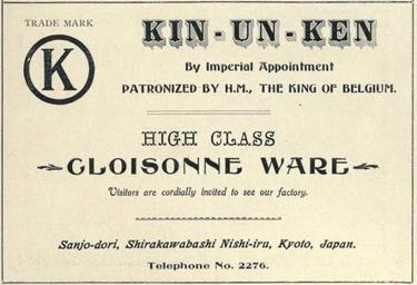 Keywords: Kin-Un-Ken 1910.jpg Advertisement of Kin'unken cloisonné company in Kyoto http //925-1000 com/forum/viewtopic php t 24259 start 160 1910 author PD-Japan Japanese cloisonné makers Companies based in Kyoto