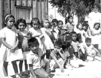 MAKE A MEME View Large Image Martha Brubacher, Mennonite voluntier, with her Kindergarten. Stanfield, Arizona. 1963. Citation: Mennonite Board of Missions Photograph Collection. Mission to Arizona, 1950-1970. IV-10-7.2 Box 1 Folder 54 , photo #40. Mennonite Church USA ...