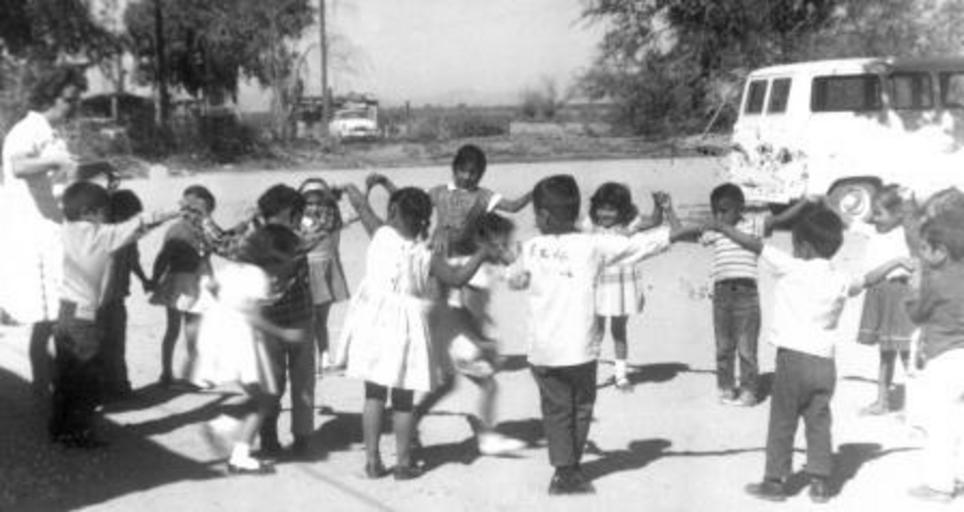| Keywords: arizona mennoniteboardofmissions kindergarten martha brubacher marthabrubacher children blackandwhite monochrome black and white Caption: Martha Brubacher, a Mennonite volunteer, with her kindergarten class in Stanfield, Arizona. 1963. Citation: Mennonite Board of Missions Photograph Collection. Mission to Arizona, 1950-1970. IV-10-7.2 Box 1 Folder 54 , photo #24. Mennonite Church USA Archives - Goshen. Goshen, Indiana. Caption: Martha Brubacher, a Mennonite volunteer, with her kindergarten class in Stanfield, Arizona. 1963. Citation: Mennonite Board of Missions Photograph Collection. Mission to Arizona, 1950-1970. IV-10-7.2 Box 1 Folder 54 , photo #24. Mennonite Church USA Archives - Goshen. Goshen, Indiana. |