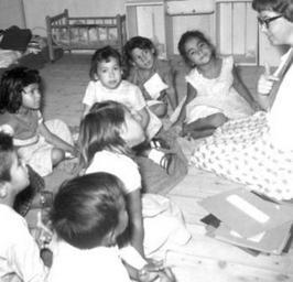 Keywords: arizona mennoniteboardofmissions voluntaryservice kindergarten martha brubacher marthabrubacher blackandwhite monochrome indoor room black and white Caption: Martha Brubacher, Mennonite volunteer kindergarten teacher, tells her children a story. Stanfield, Arizona. 1963. Citation: Mennonite Board of Missions Photograph Collection. Mission to Arizona, 1950-1970. IV-10-7.2 Box 1 Folder 54 , photo #37. Mennonite Church USA Archives - Goshen. Goshen, Indiana. Caption: Martha Brubacher, Mennonite volunteer kindergarten teacher, tells her children a story. Stanfield, Arizona. 1963. Citation: Mennonite Board of Missions Photograph Collection. Mission to Arizona, 1950-1970. IV-10-7.2 Box 1 Folder 54 , photo #37. Mennonite Church USA Archives - Goshen. Goshen, Indiana.