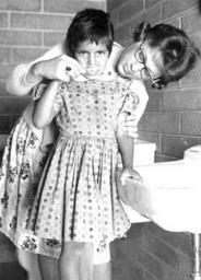 | Keywords: arizona mennoniteboardofmissions voluntaryservice kindergarten mary slabach maryslabach teeth brushing teethbrushing blackandwhite people monochrome black and white Caption: Mary Slabach, Mennonite Volunteer from Ohio, is assisting a kindergarten child in learning to brush her teeth.. Stanfield, Arizona. 1964. Citation: Mennonite Board of Missions Photograph Collection. Mission to Arizona, 1950-1970. IV-10-7.2 Box 1 Folder 55 , photo #25. Mennonite Church USA Archives - Goshen. Goshen, Indiana. Caption: Mary Slabach, Mennonite Volunteer from Ohio, is assisting a kindergarten child in learning to brush her teeth.. Stanfield, Arizona. 1964. Citation: Mennonite Board of Missions Photograph Collection. Mission to Arizona, 1950-1970. IV-10-7.2 Box 1 Folder 55 , photo #25. Mennonite Church USA Archives - Goshen. Goshen, Indiana. |